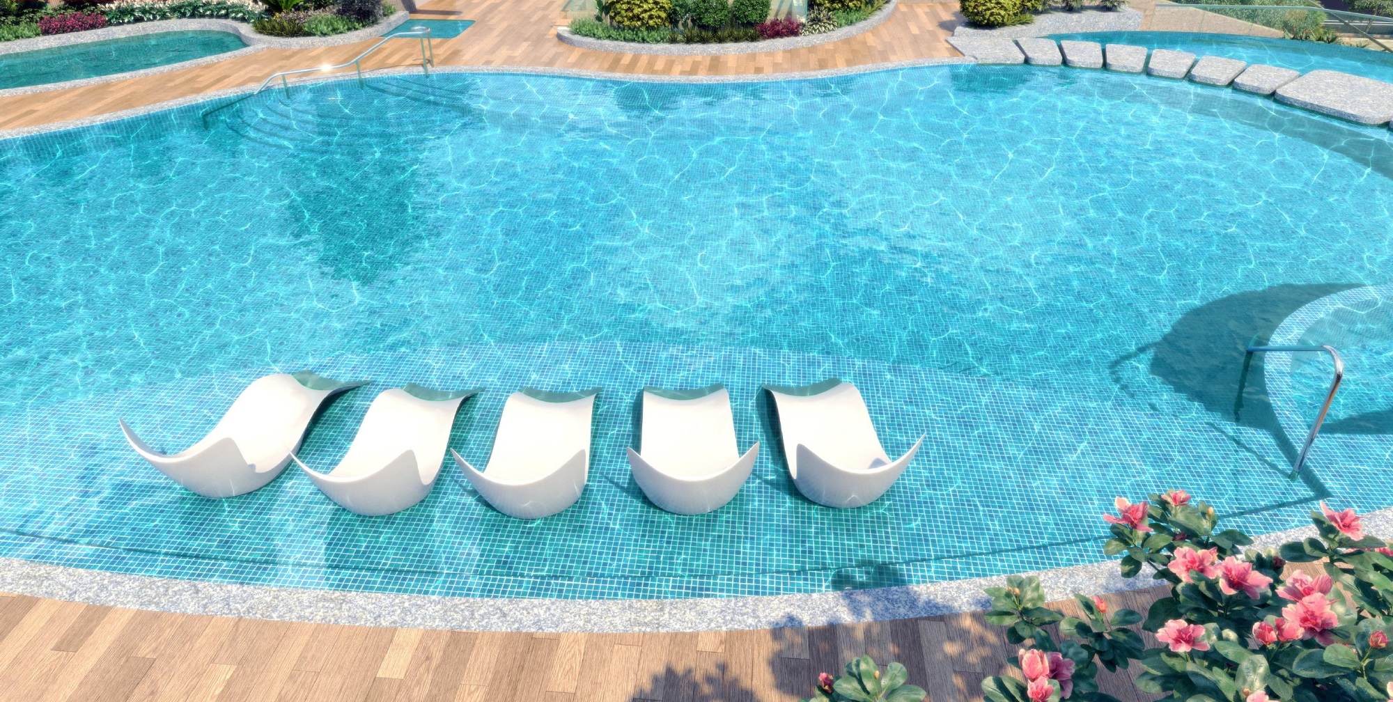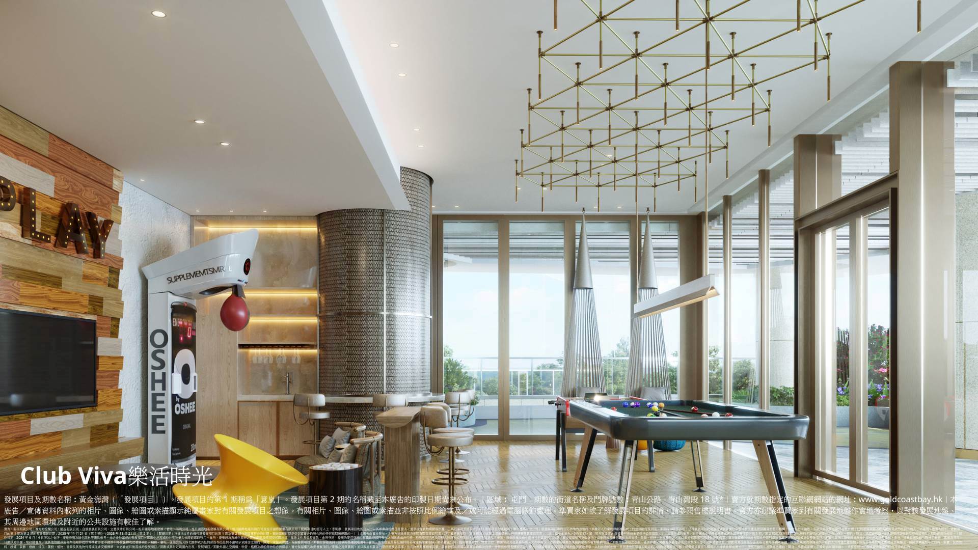 黃金海灣採用雙會所設計,分為一期和二期,連同園林部份面積約10萬方呎,以山水縈繞為設計概念,坐擁45項會所設施,合共有超過8大主題,遍佈東西區域。